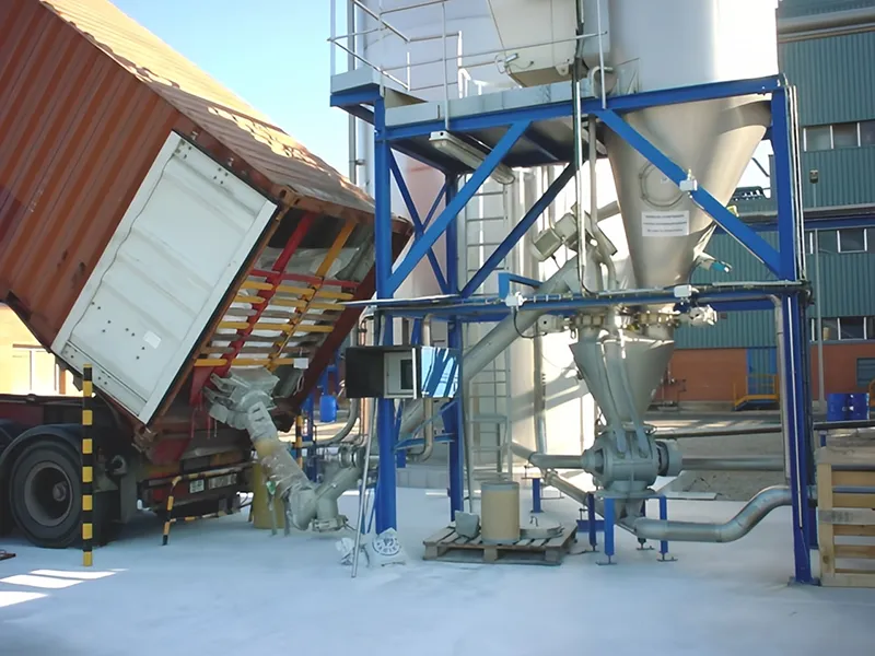 تم تصميم نظام تفريغ الحاويات الكبيرة لتحقيق تفريغ فعال للمواد السائبة مثل المساحيق، الحبيبات، والكتل من الحاويات، حيث يدعم النظام عمليات التحميل والتفريغ لكل من الشاحنات الكبيرة، ويُعد مناسباً لمجموعة واسعة من أنواع المواد وسيناريوهات مناولة المواد المختلفة، مع ضمان الحد الأدنى من فقد المواد وانبعاث الغبار، وتحقيق كفاءة تشغيلية عالية.