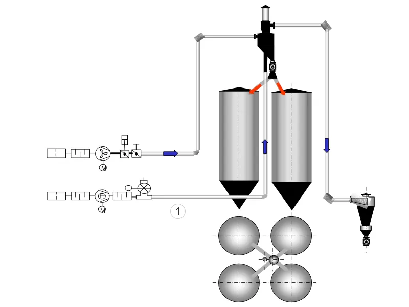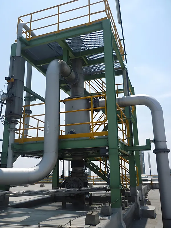 في أنظمة مناولة المواد الصلبة السائبة، حيث تُستخدم صومعة (سايلو) نزع الغازات (Degassing Silo) لاستخلاص الغازات الخطرة المنبعثة من المواد المخزنة، بما في ذلك الأوليفينات المتطايرة مثل السيكلوهكسان والأوكتين والإيثيلين. كما يسهم هذا النظام في الحفاظ على بيئة عمل آمنة، ويعزز كفاءة العمليات اللاحقة من خلال تقليل المخاطر وتحسين جودة المواد قبل معالجتها في المراحل التالية.
